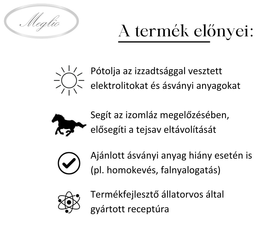 Adagolás: lovaknak 20 g naponta, póniknak és 2 év alatti csikóknak 10 g naponta